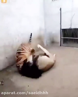 جنگ جدید ببر و شیر در قفس (چند ثانیه تا مرگ شیر)