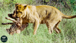 شکار گراز توسط بچه شیر